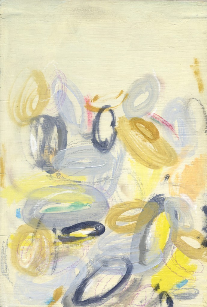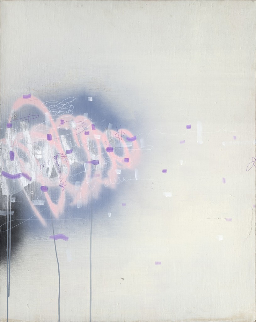 • Untitled, 2015 Acrylic, pastel and gritter on paper mounted on panel 607 x 450 mm