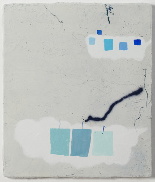 • BM, 2017 Acrylic, oil pastel, house paint and spray paint on plaster on wooden pannel 410 × 318 mm